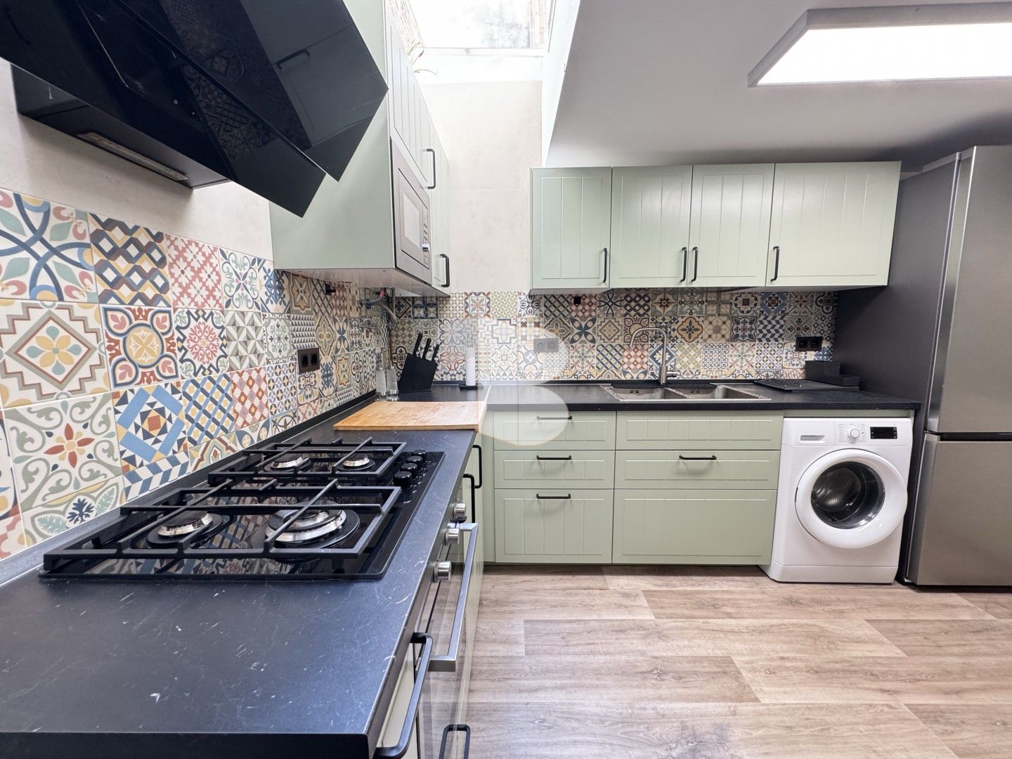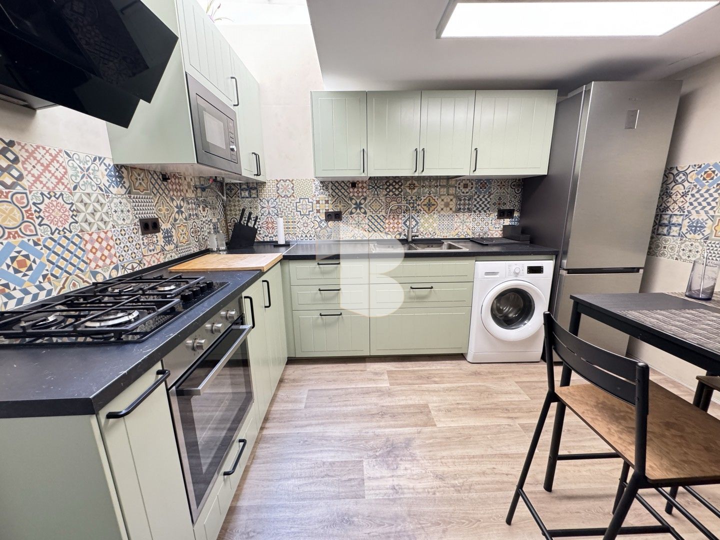 En la planta principal nos recibe un salón acogedor y moderno. Destaca su amplia cocina con zona de comedor, un espacio bañado por la luz natural gracias a una espectacular claraboya que aporta amplitud y calidez durante todo el día. En esta planta también contamos con un práctico aseo de cortesía.