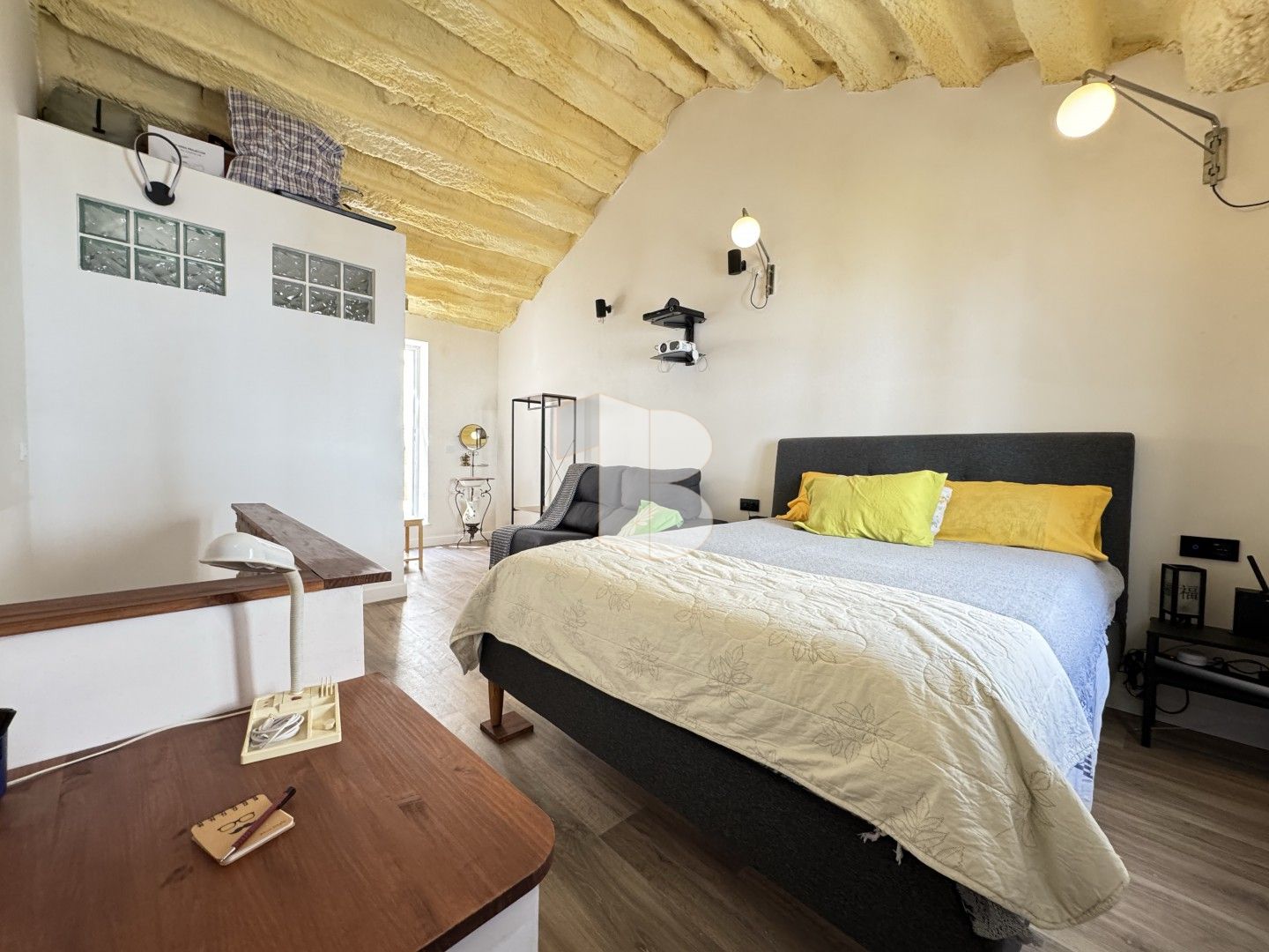 En la planta alta tenemos la zona de descanso con un dormitorio de generosas dimensiones, luminoso y tranquilo. Dispone de un baño completo con ventana al exterior, asegurando una ventilación natural inmejorable.
